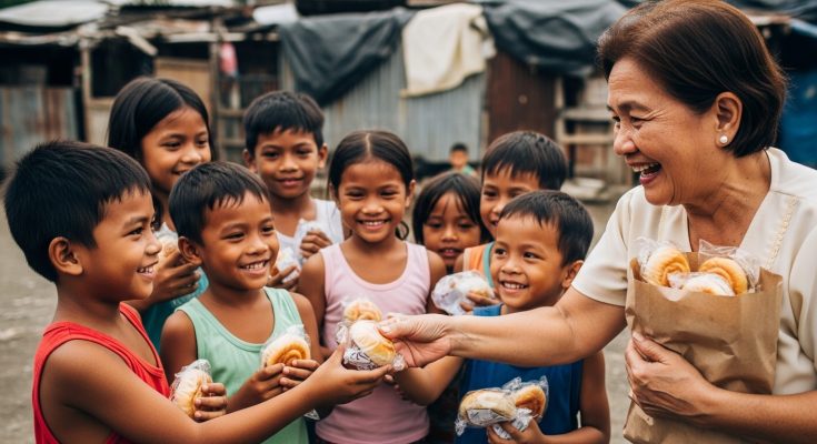Isa-isang inabot ni Donya Remedios ang mga tinapay—maingat, parang mamahaling alahas ang hawak. Hinahati pa niya ang ensaymada para sa mas maliliit na bata, tinitiyak na walang maiiyak, walang mapag-iiwanan.