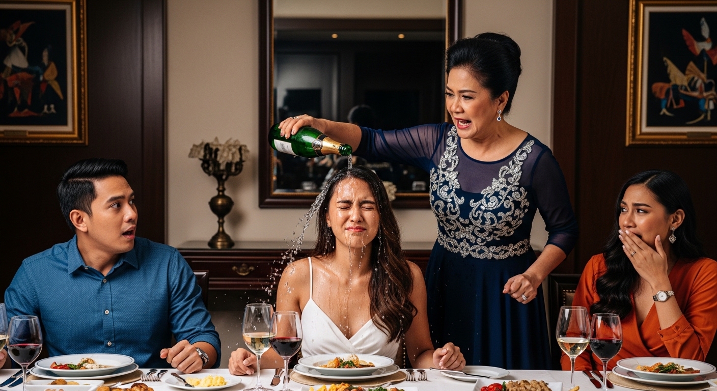 Sa dulo ng mahabang mesa, nakaupo si Doña Matilda, ang nanay ni Mark. Punong-puno ng dyamante ang leeg, at ang tingin sa akin ay parang nakakita ng ipis na gumapang sa pagkain niya.